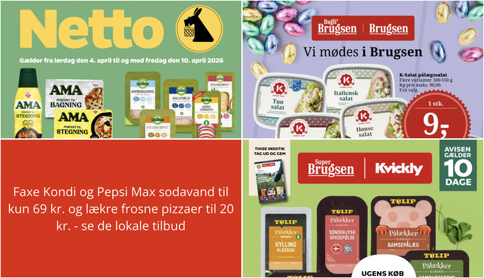 Netto har et godt tilbud på Faxe Kondi eller Pepsi Max sodavand, hvor du kan få 24 x 33 cl for kun 69 kr. Tilbuddet gælder fra lørdag den 4. april til fredag den 10. april 2026.